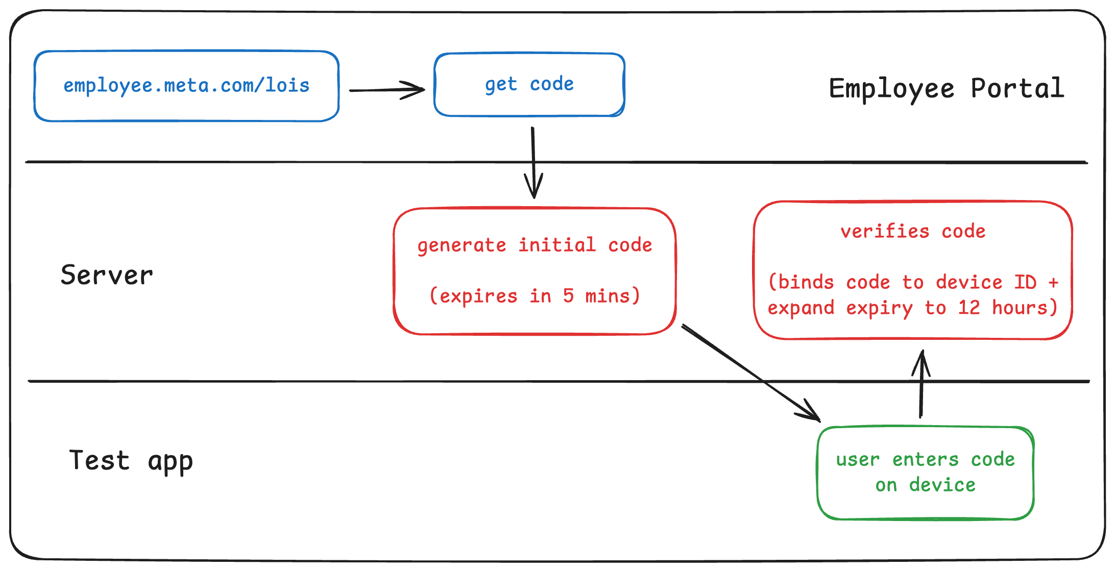 At this point, I started thinking of an alternative to “dev pods” for the highest level access. Some job functions (like QA, design) can benefit from this tool as well but they don’t usually have access to a dev pod. I quietly put together an idea for an access flow similar to how TOTP works. I call this the “Employee Authenticator”. More on this later.